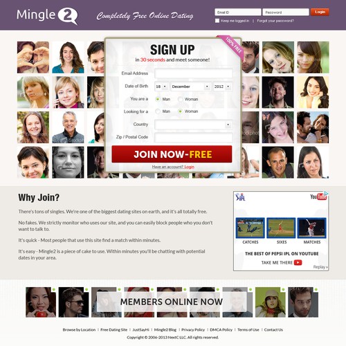 Mingle2 Online Dating Site New Design Web Page Design Contest 99designs